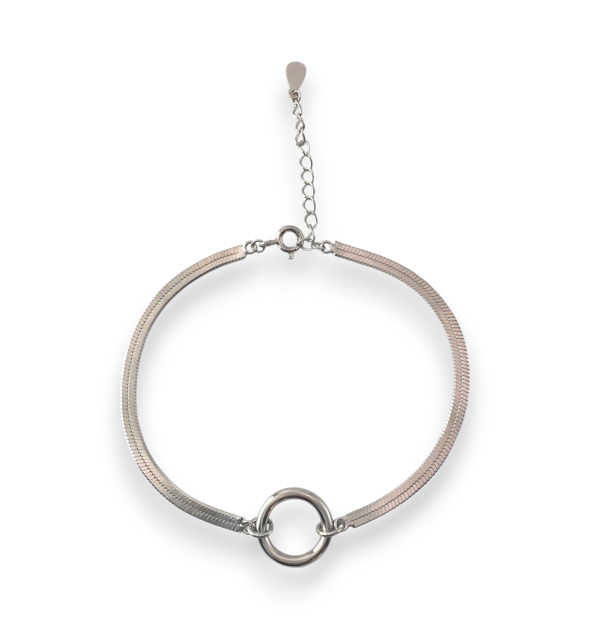 Sterling Silver Herringbone Chain Circle Linked Bracelets