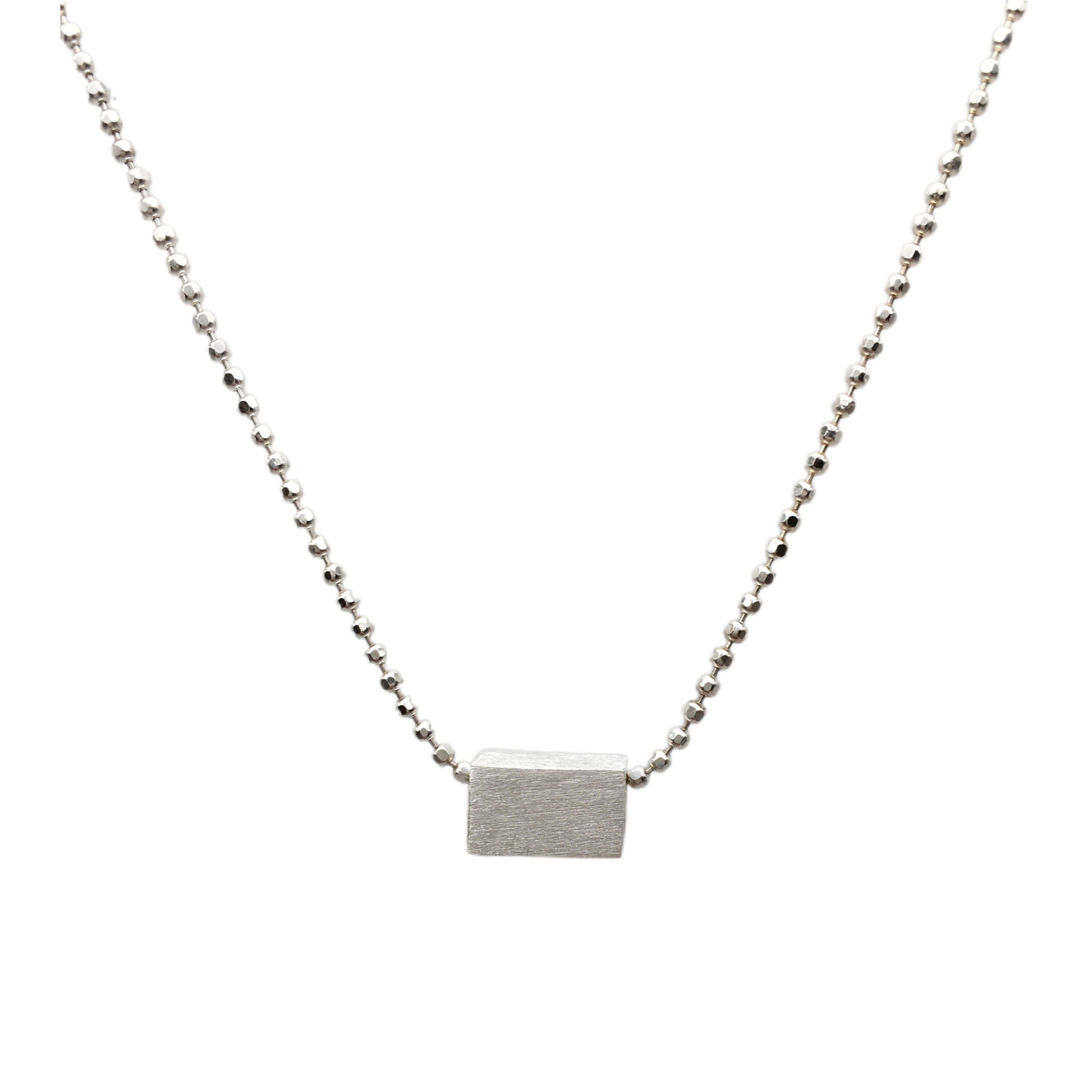 Sterling Silver Rectangular Prism Pendant Necklace